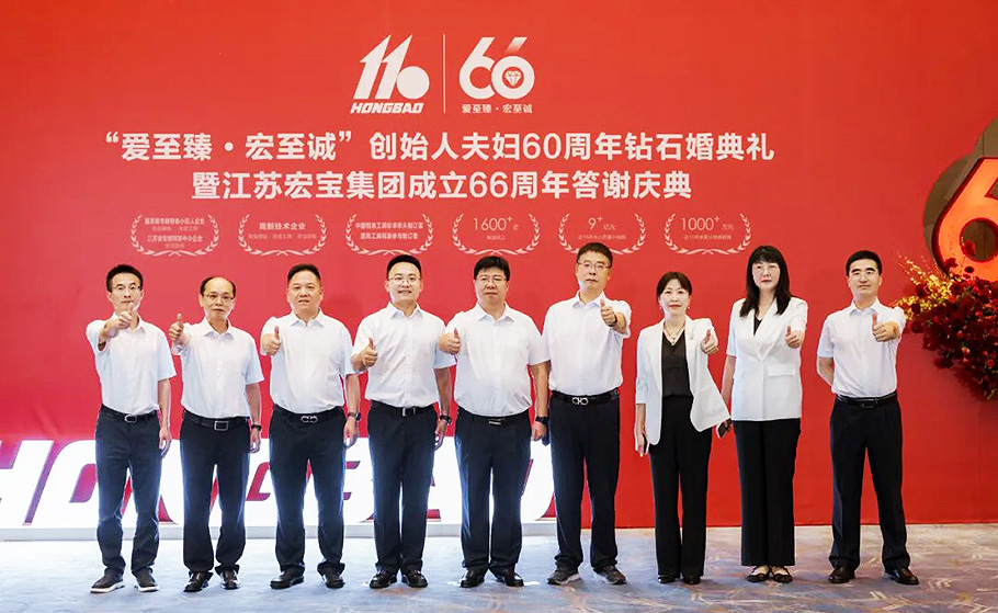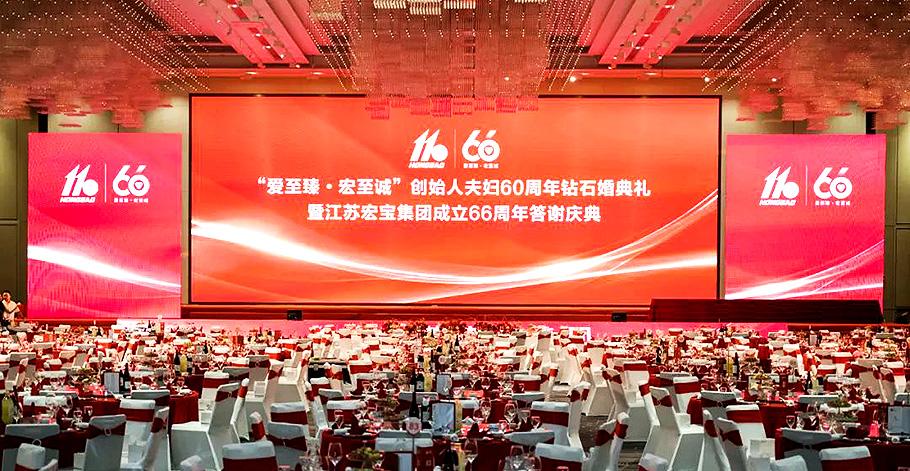 2024年9月20日,江蘇宏寶集團(tuán)公司迎來了建廠66周年,恰逢創(chuàng)始人朱玉寶夫婦結(jié)婚60周年紀(jì)念日?!皭壑琳椤ず曛琳\”創(chuàng)始人夫婦60周年鉆石婚典禮暨江蘇宏寶集團(tuán)成立66周年答謝慶典隆重舉行。來自社會各界友人、宏寶集團(tuán)中層以上干部及家屬和員工代表們歡聚一堂,共襄盛典。